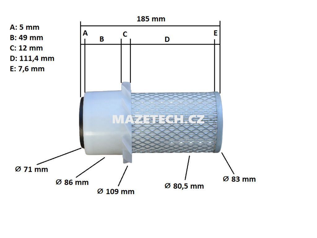 Vzduchový filtr pro traktory Kubota. Rozměry viz obrázek.