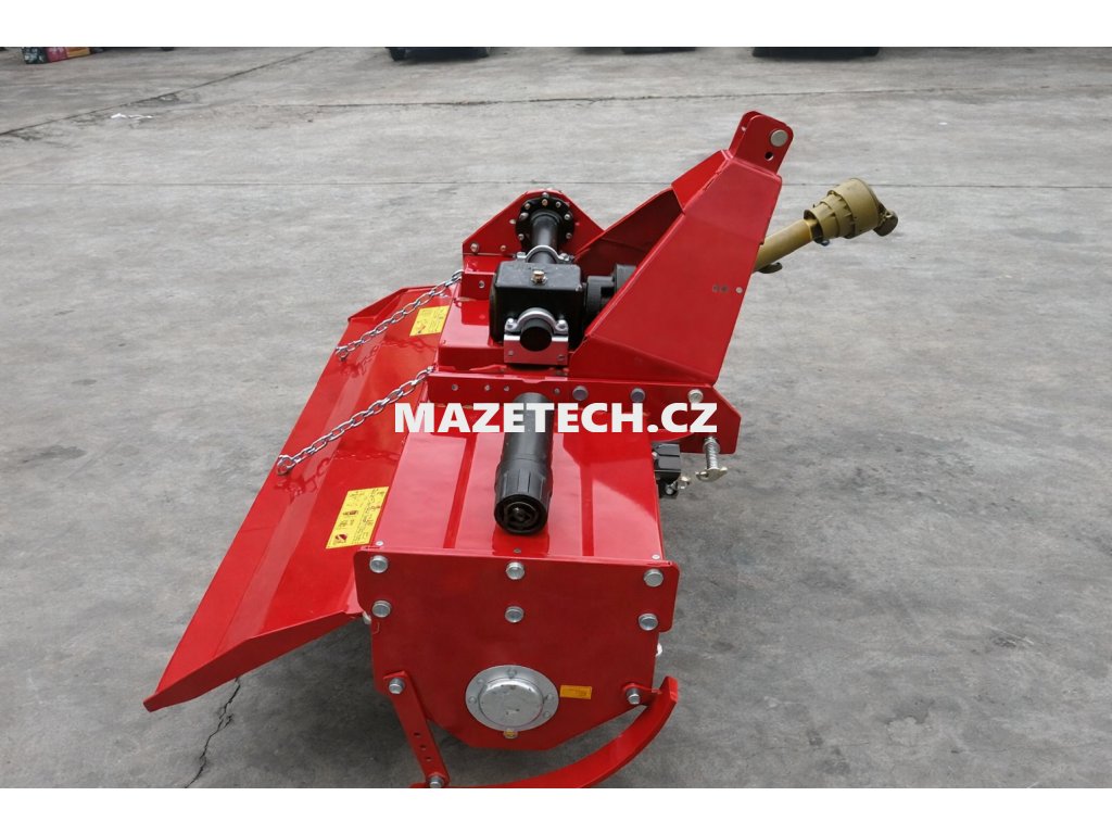 Rotavátor je vybaven bočně ohnutými masivními noži, které důkladně promíchávají půdu.